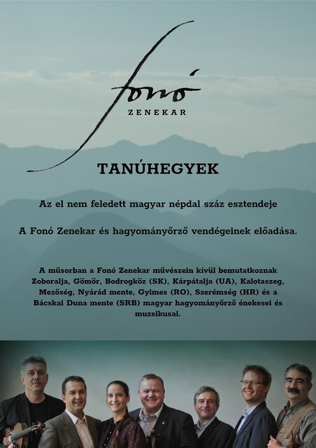 Predstavenie kapely Fonó a ich hostí.V programe účinkujú hudobníci a speváci, predstavitelia tradičnej maďarskej ľudovej hudby Podzoboria, Gemera, Medzibodrožia, Podkarpatska.