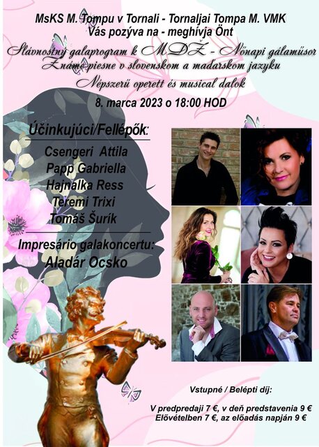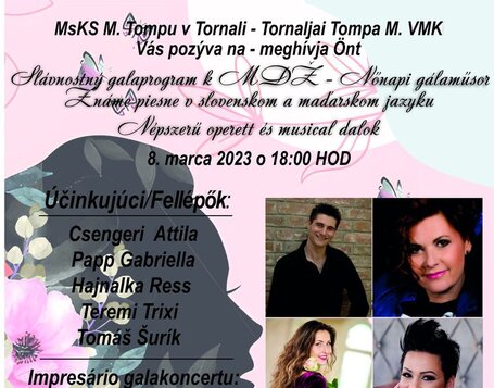 Operetný galaprogram. Známe operetné a muzikálové hity v slovenskom a maďarskom jazyku z príležitostí MDŽ.