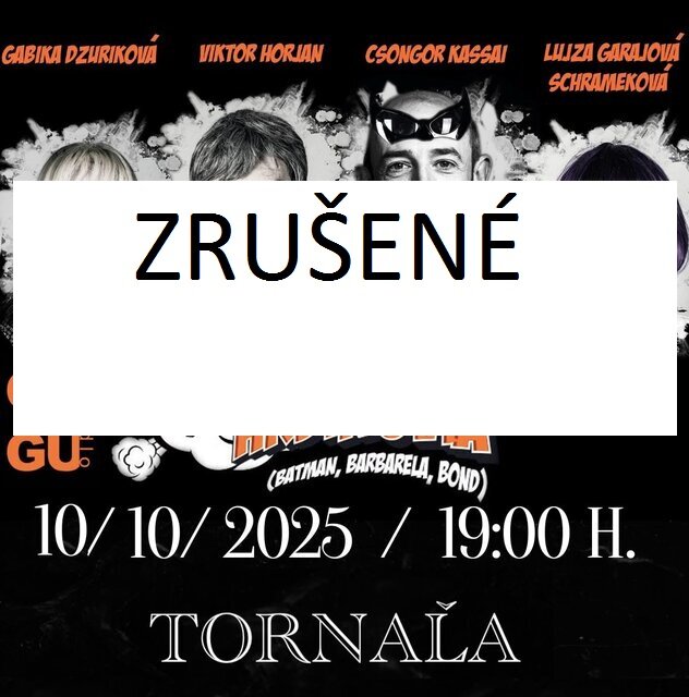 Mestské kultúrne stredisko Mihálya Tompu v Tornali a Divadlo Gunagu informuje záujemcov, že pre nízky záujem sa divadelné predstavenie Poslední hrdinovia, plánované na 10.októbra 2025 neuskutoční . Zakúpené vstupenky môžete vrátiť v Mestskej knižnici Tornaľa.